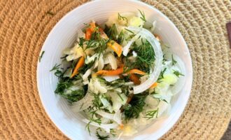 В сковороду налить еще 2 ст. ложки растительного масла. Обжарить лук до золотистого цвета.