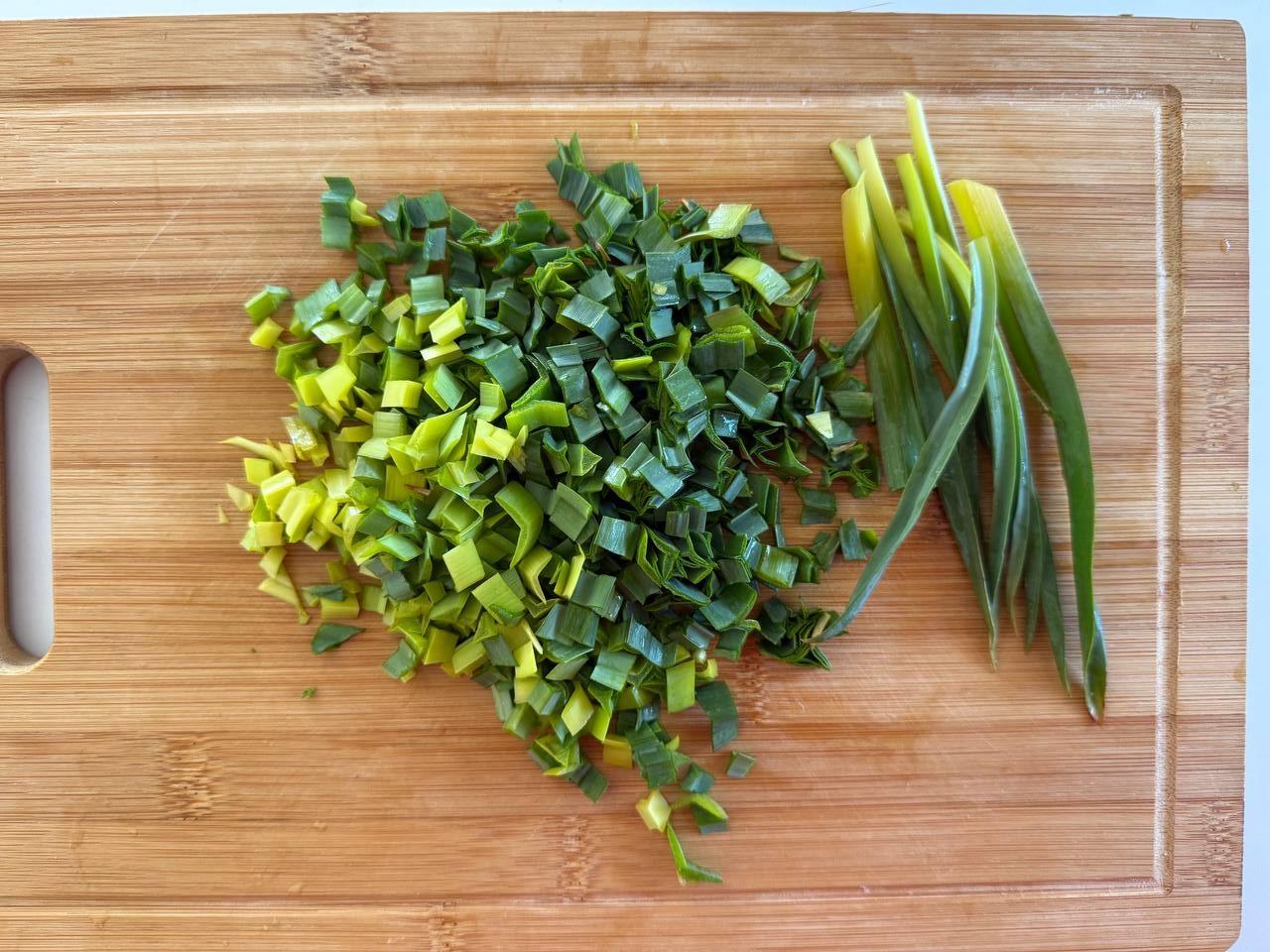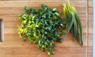 Черемшу или джусай помыть, очистить и нарезать небольшими кусочками.