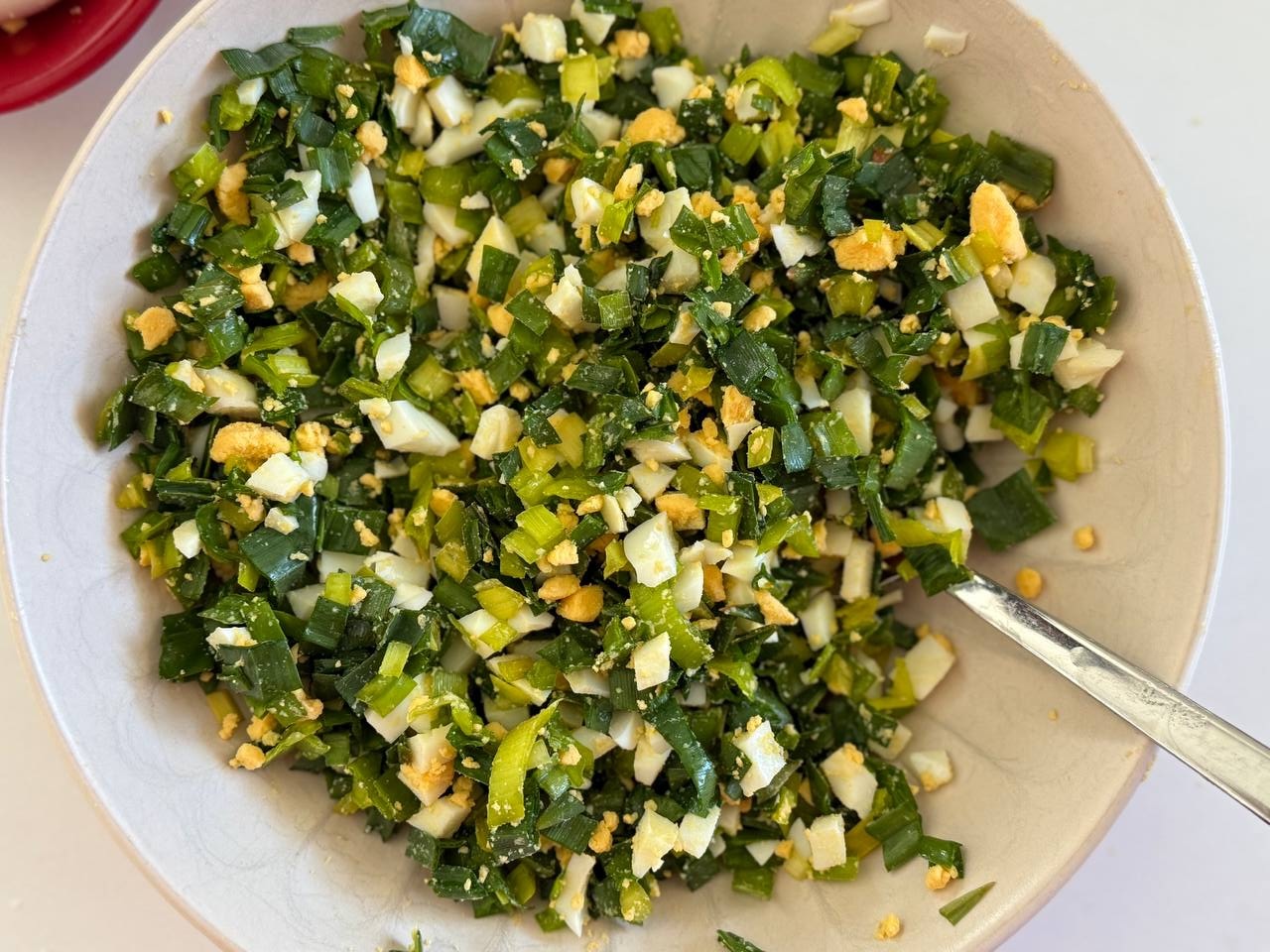 Сметану можно заменить на греческий йогурт, салат из черемши с яйцом получится легче и менее жирным, или на майонез для более насыщенного вкуса.