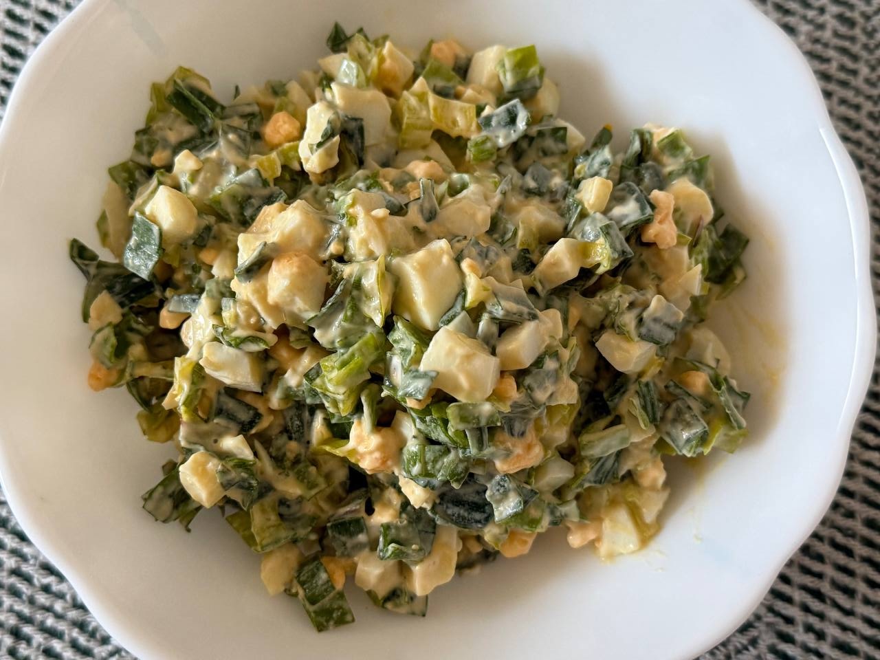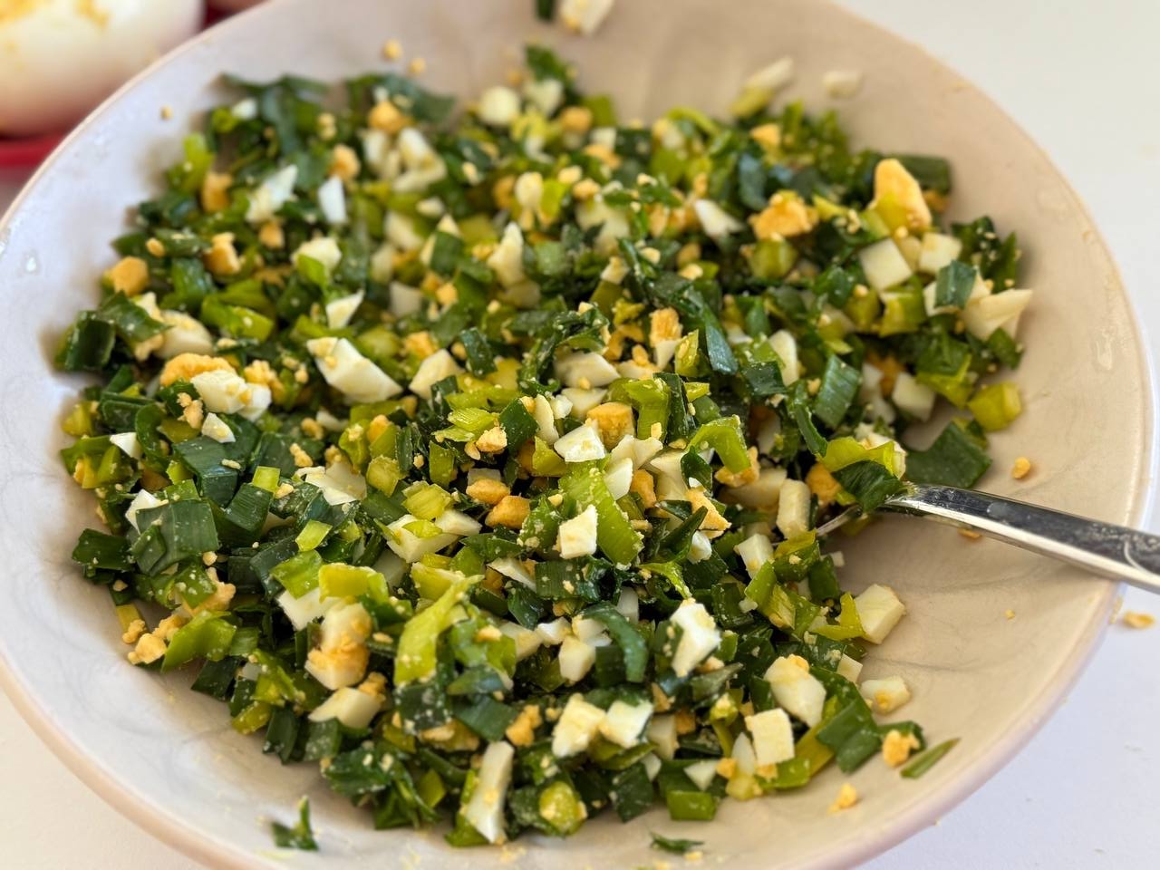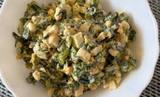Салат из черемши с яйцами одно из самых простых и характерных блюд, сформировавшихся в народной домашней кухне. Он относится к весенним сезонным блюдам, которые готовились в период сбора молодой зелени.
