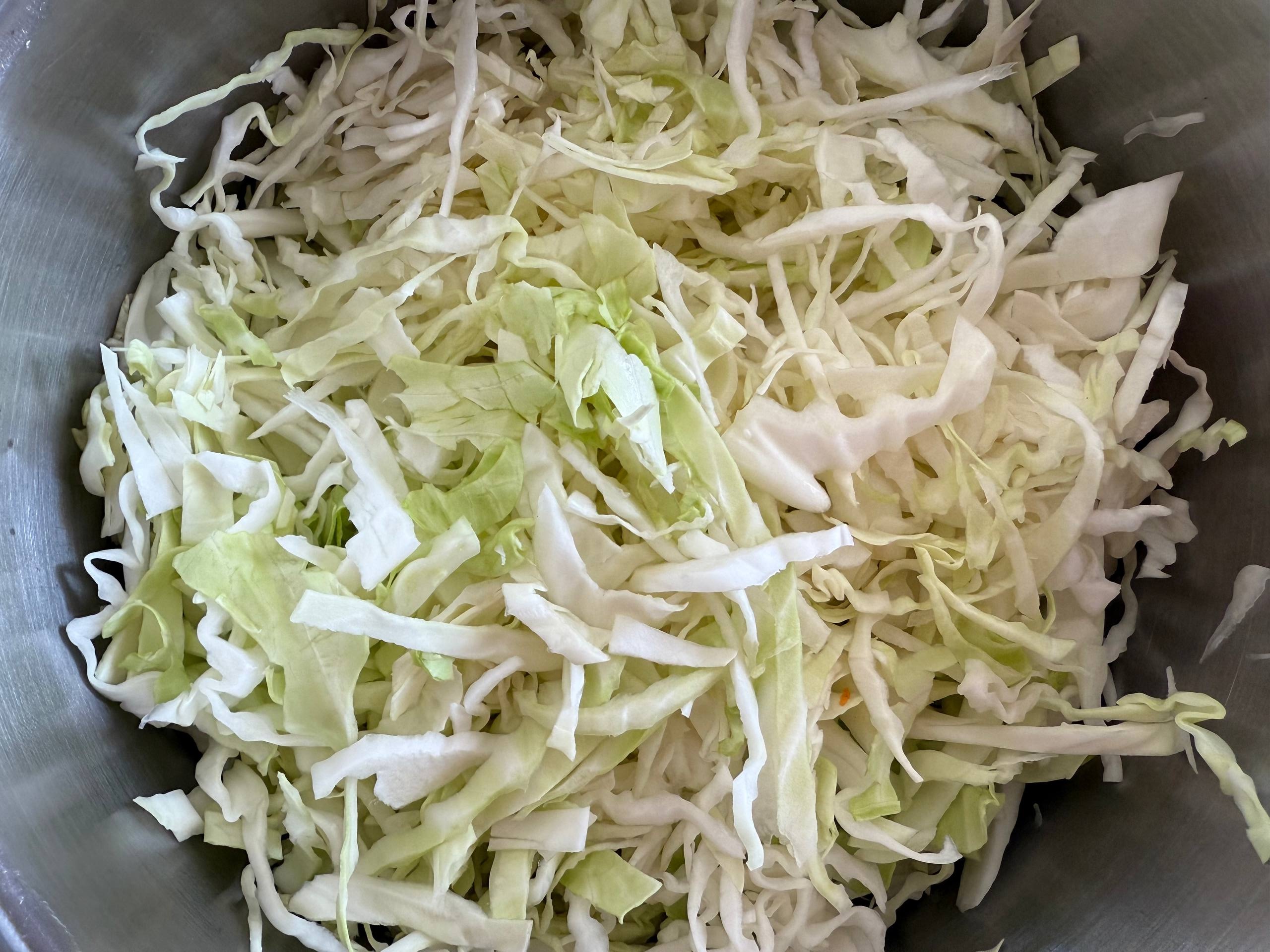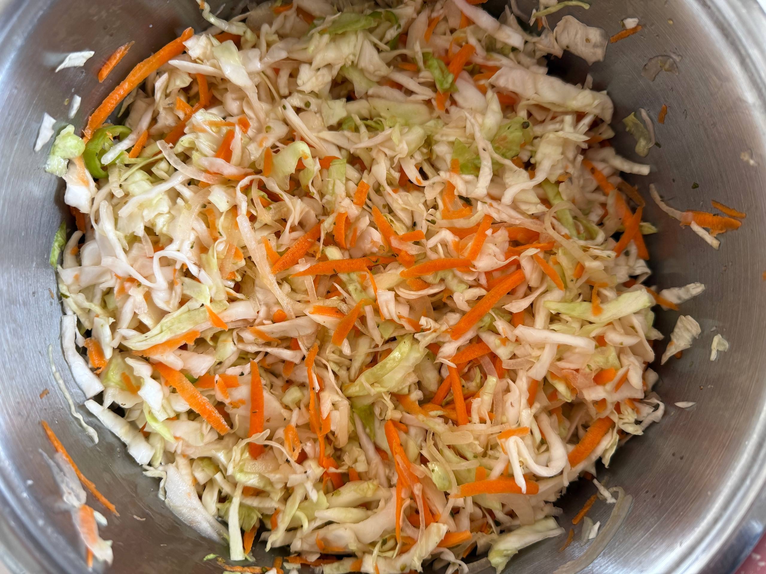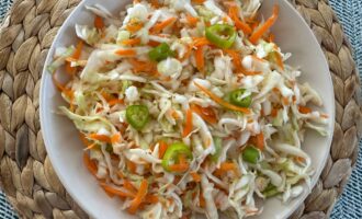 В классической версии для этого салата используют белокочанную капусту, но можно варьировать и использовать пекинскую или другие сорта капусты для более мягкого вкуса.