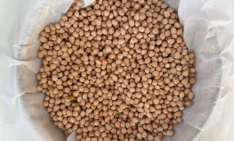 Круглую форму смазать маслом и распределить тесто по дну и бортам, делая края для пирога. Сверху теста положить пергаментную бумагу, а на нее насыпать мелкий груз (фасоль, горох или гальку). И так поставить в духовку на 15 минут. Это будет основа для тыквенного пирога.