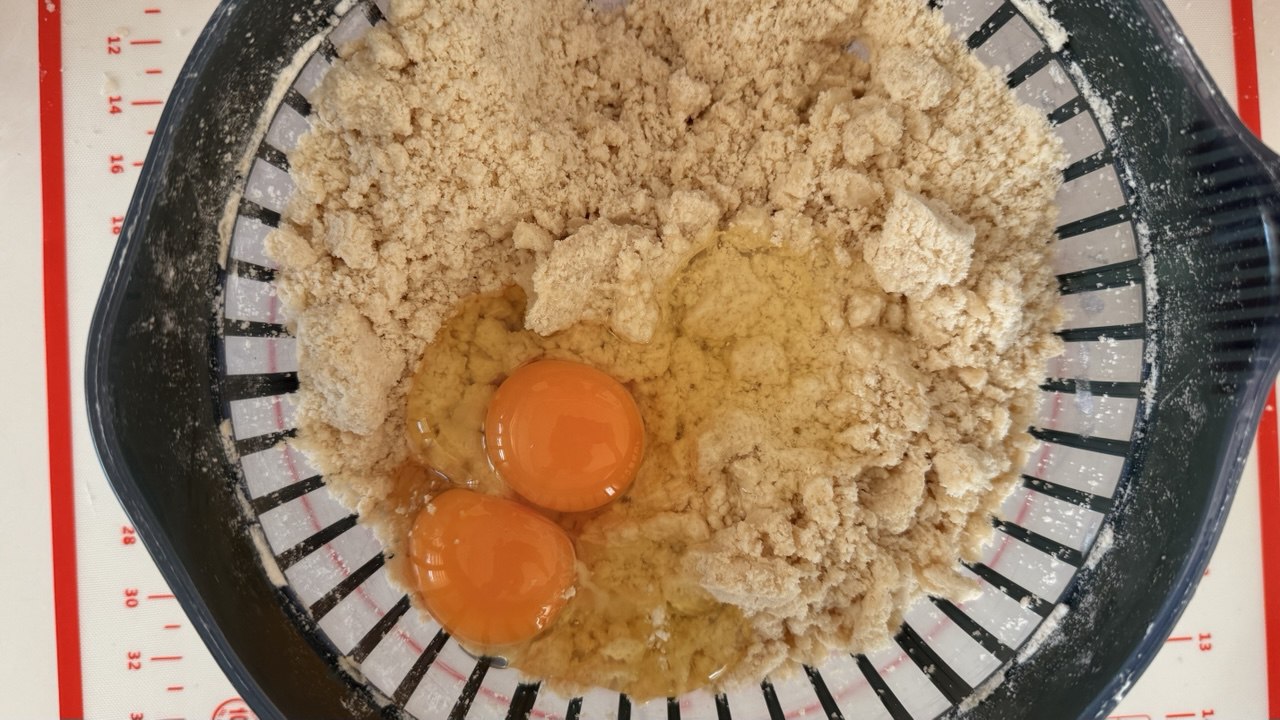 Добавить одно яйцо, хорошо перемешать, замесить тесто и убрать его под плёнку в холодильник минимум на полчаса.