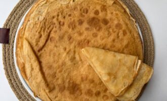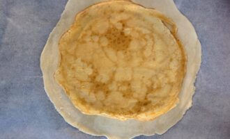 • Приготовить очень тонкие блины около 22-24 см в диаметре.