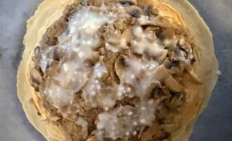 • Выложить начинку из грибов, полить соусом и накрыть блином.