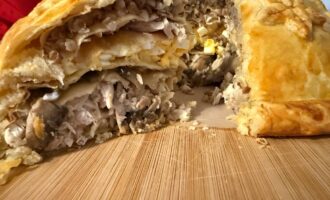 • Готовый курник оставить на 15-20 минут пропитаться, а затем нарезать на куски и подавать в теплом виде.