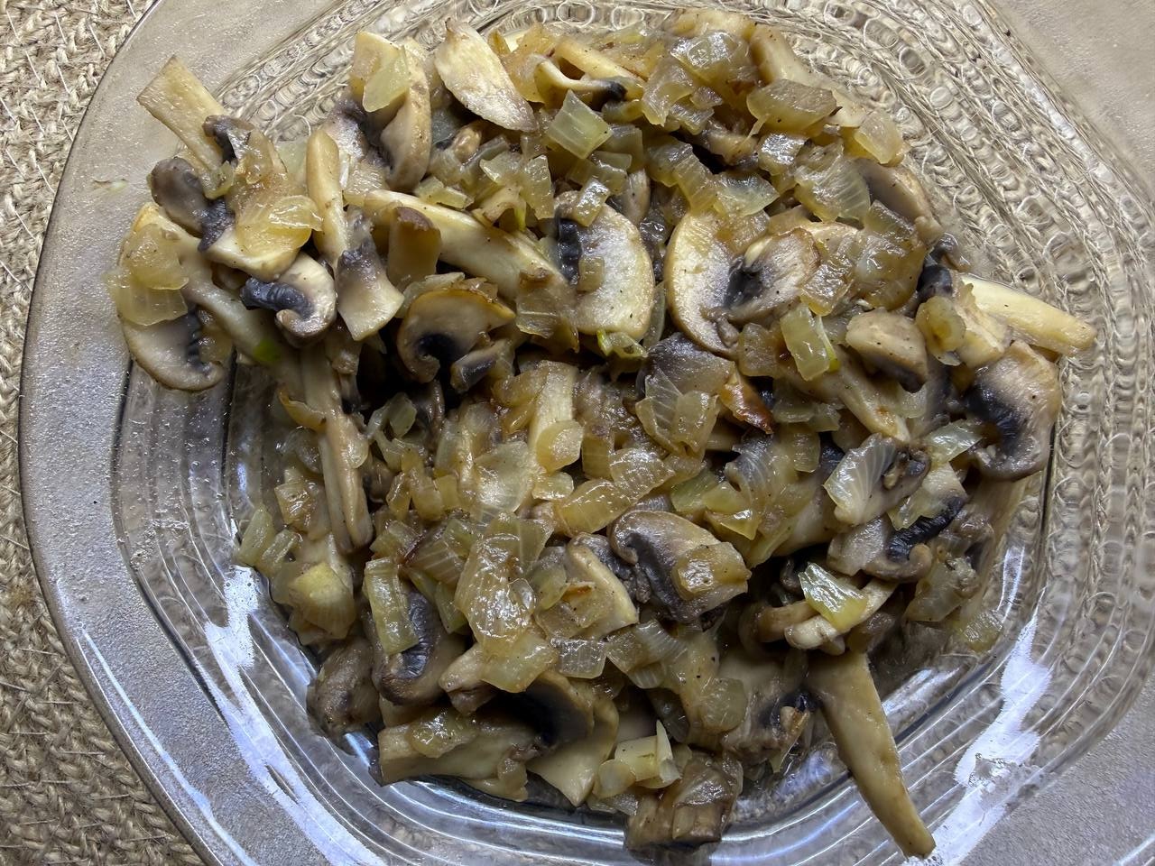 • Грибы и лук нарезать. В толстостенной сковороде разогреть небольшое количество растительного масла. Обжарить лук до золотистого цвета, затем добавить грибы и обжарить до готовности.