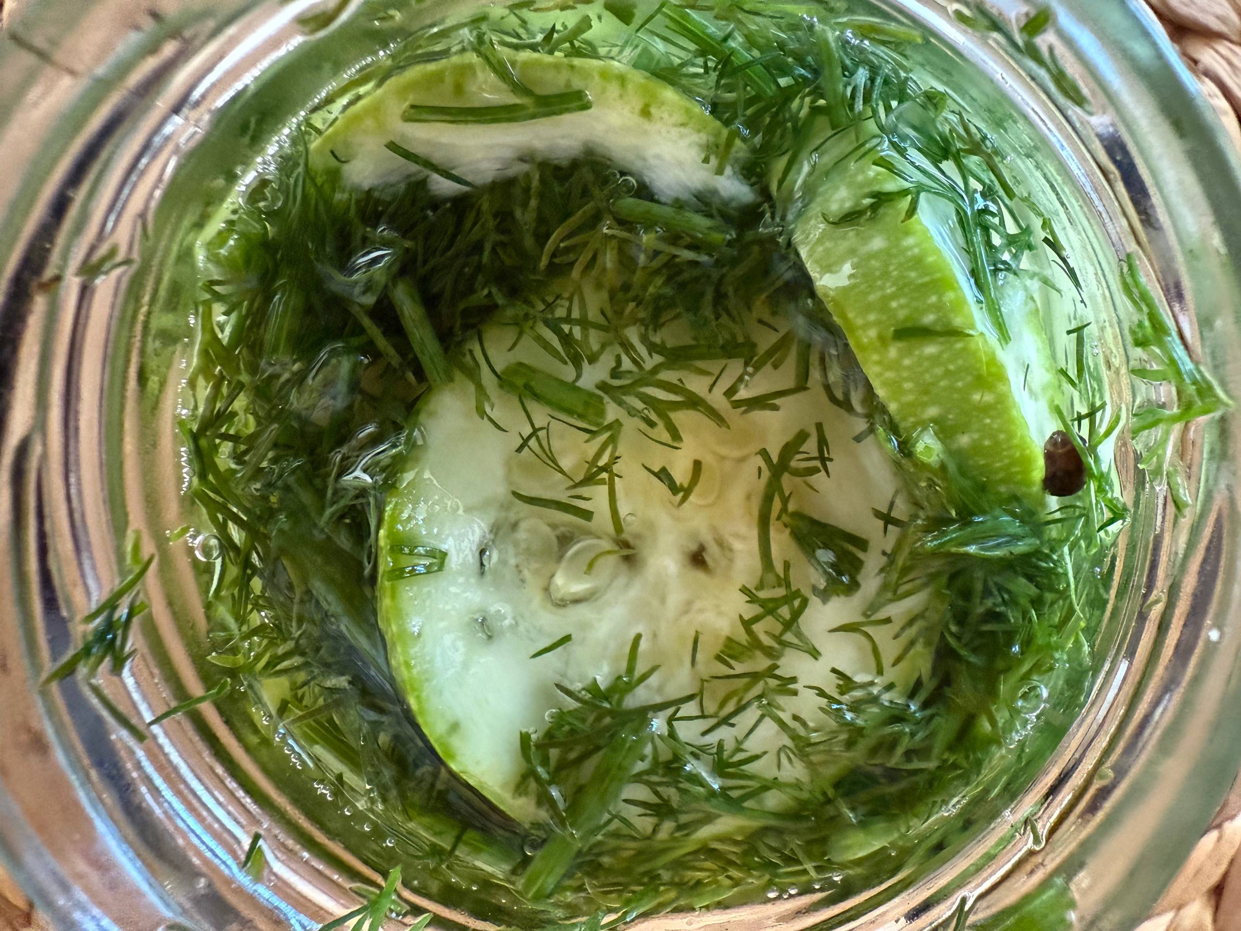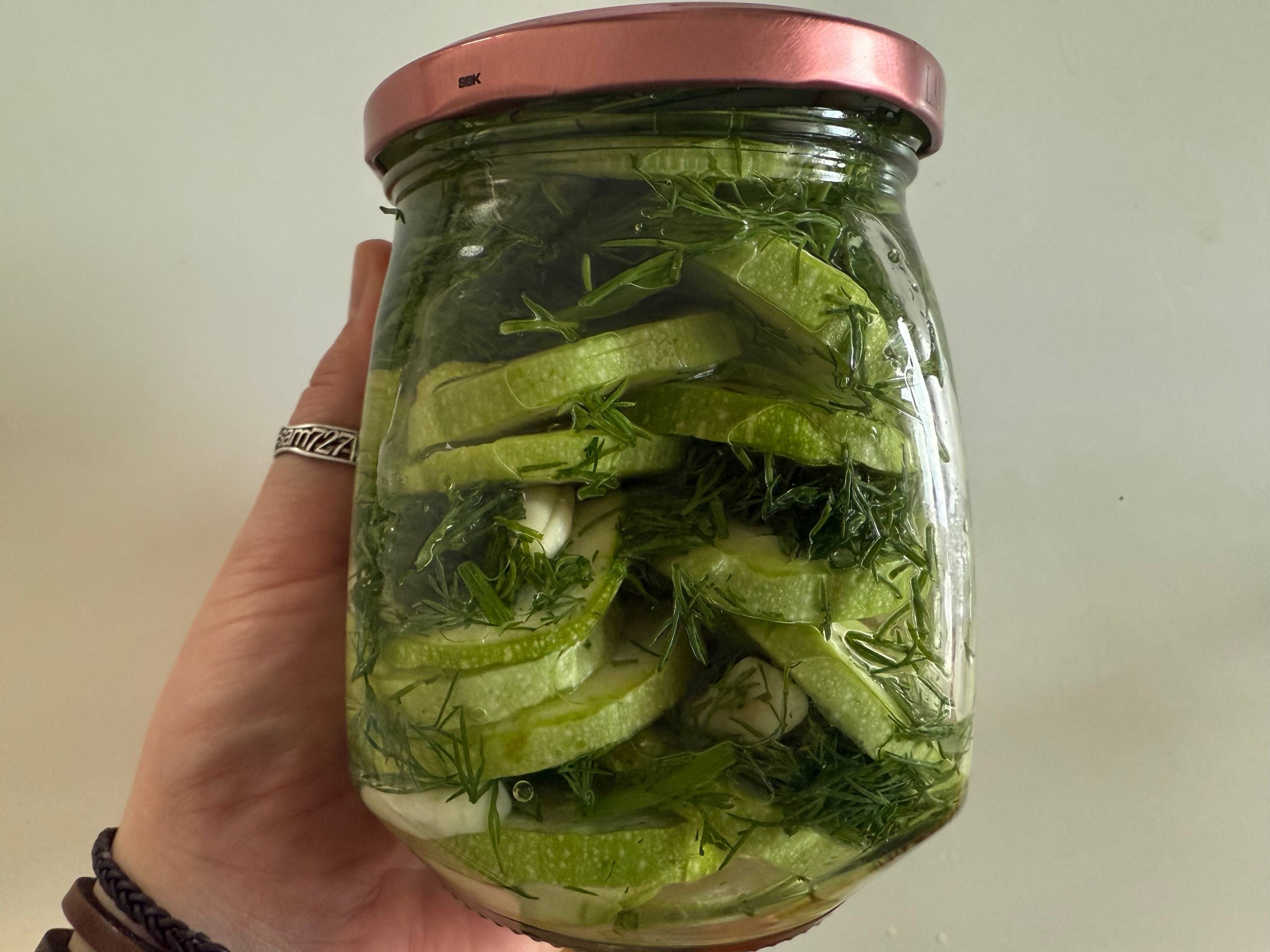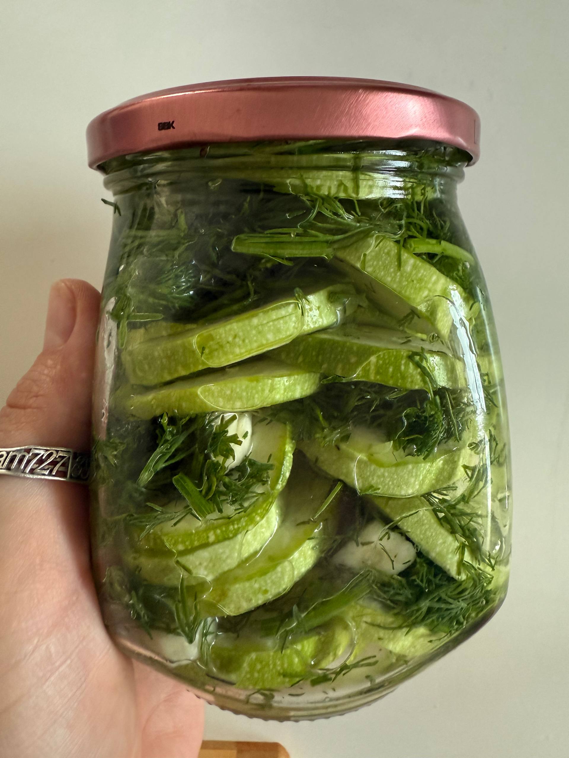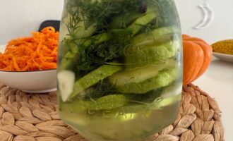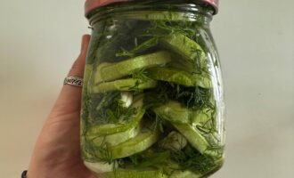 Залить кабачки этим рассолом так, чтобы жидкость полностью покрыла их.