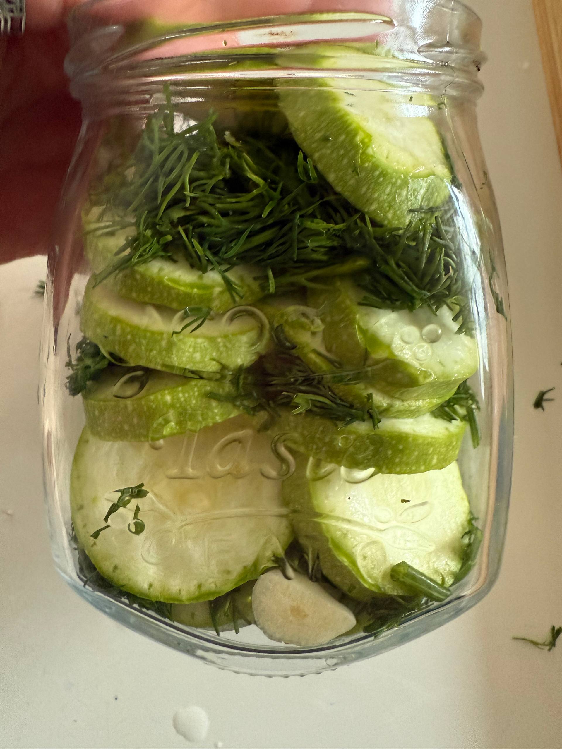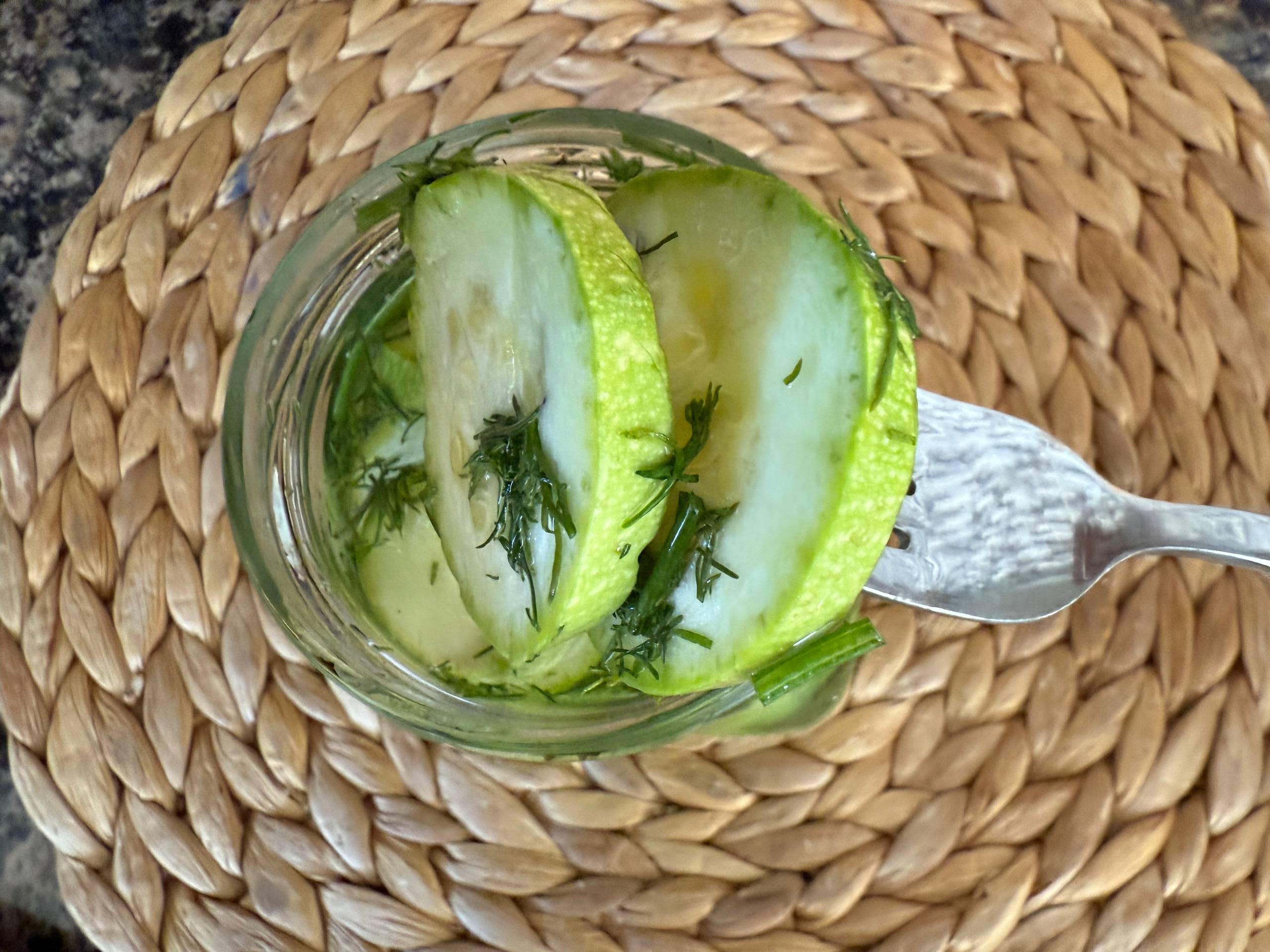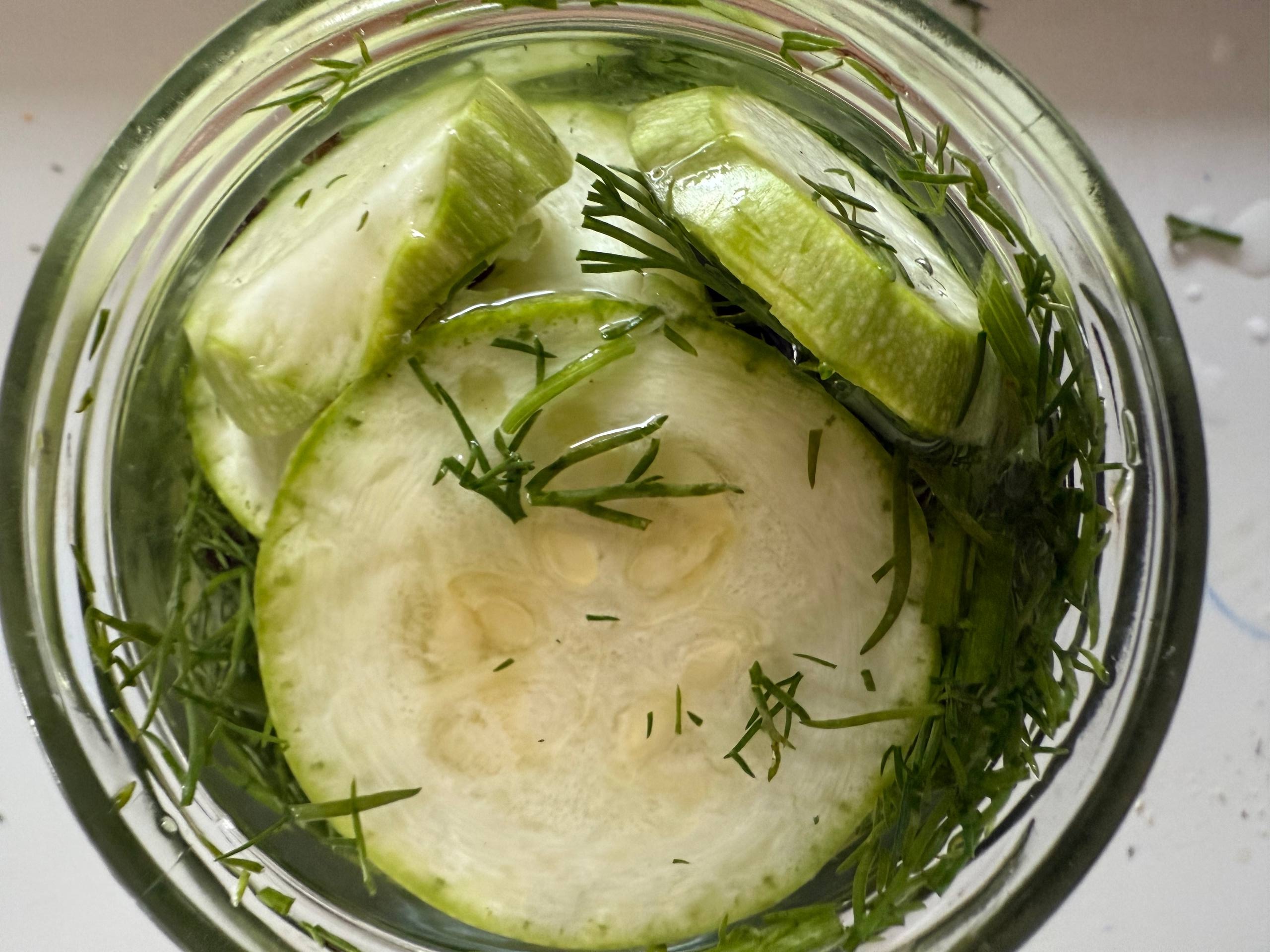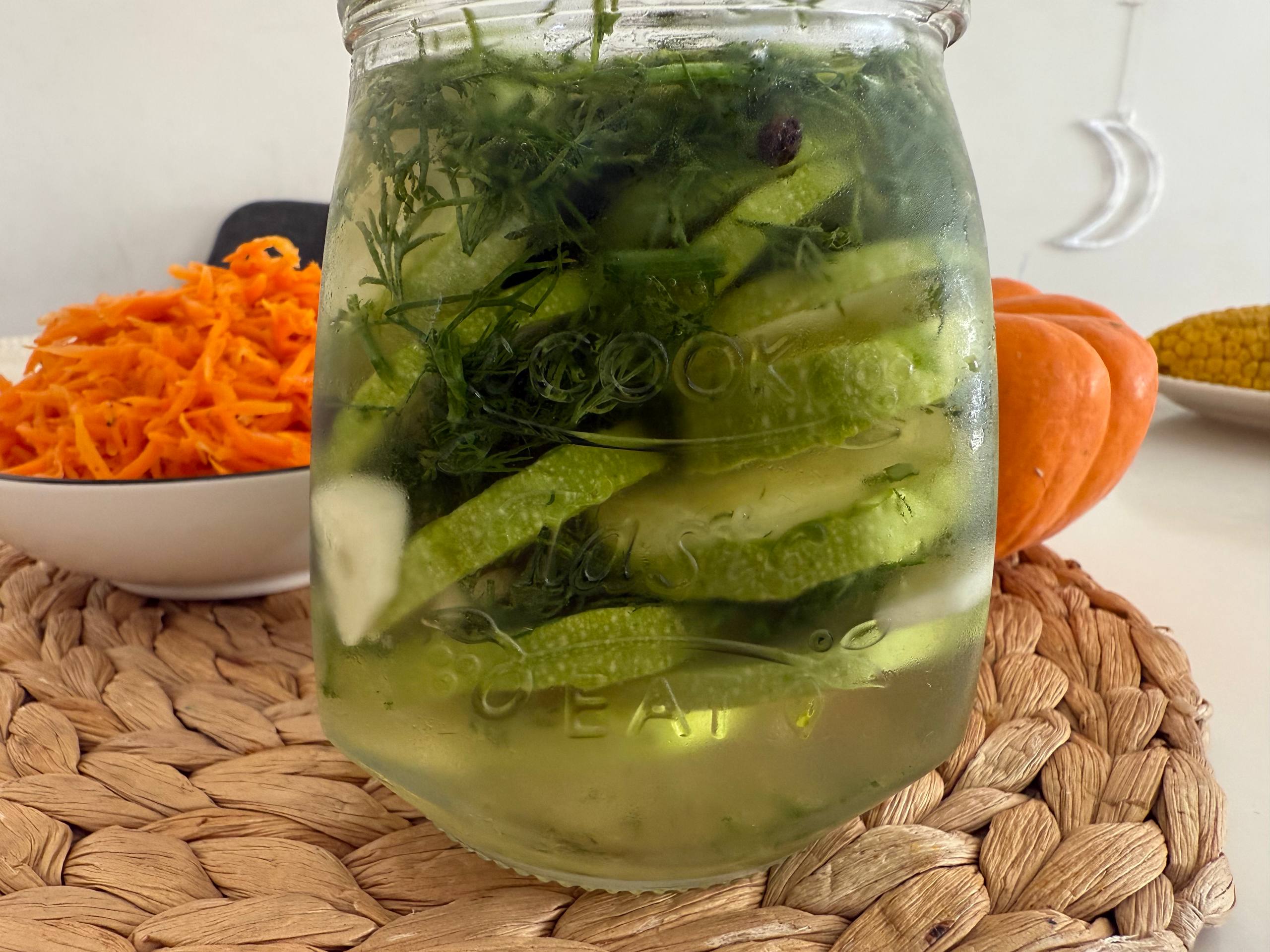 Залить кабачки этим рассолом так, чтобы жидкость полностью покрыла их.