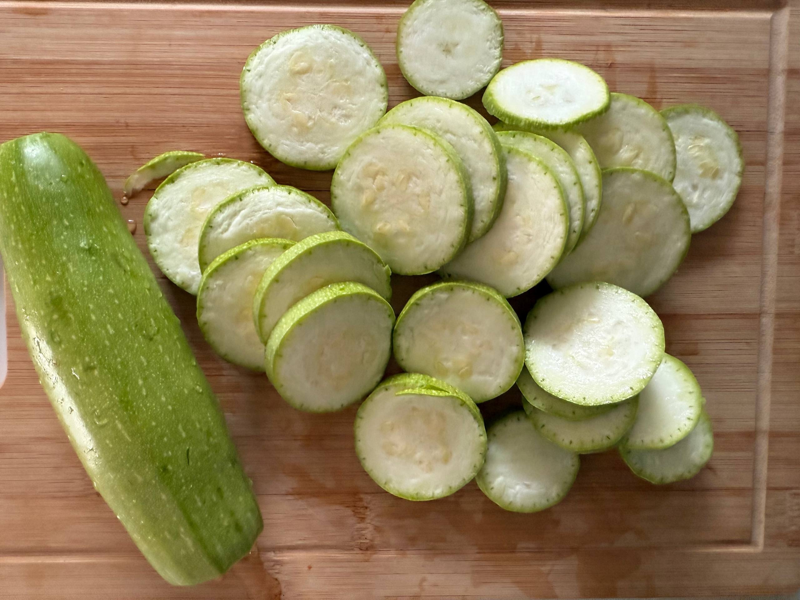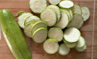 Кабачки вымыть и нарезать кружочками или брусочками.