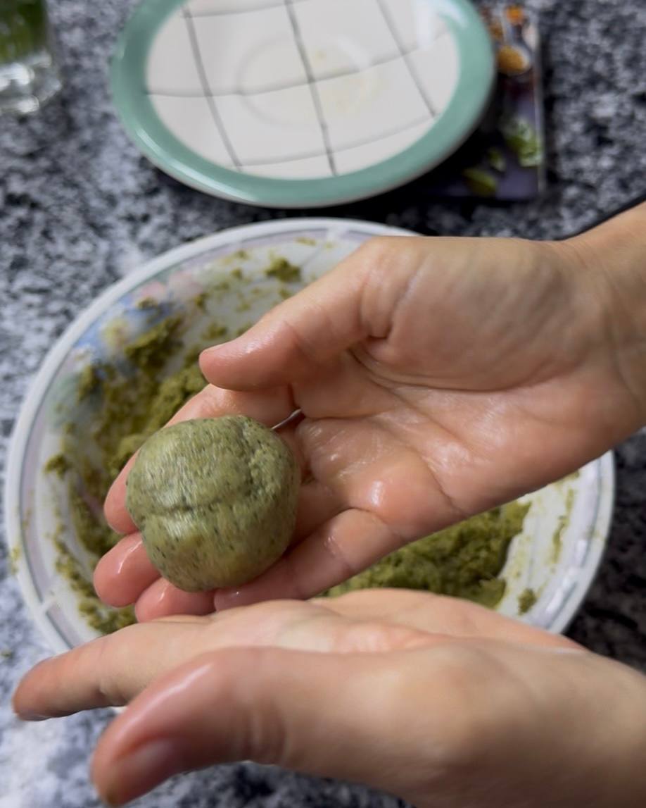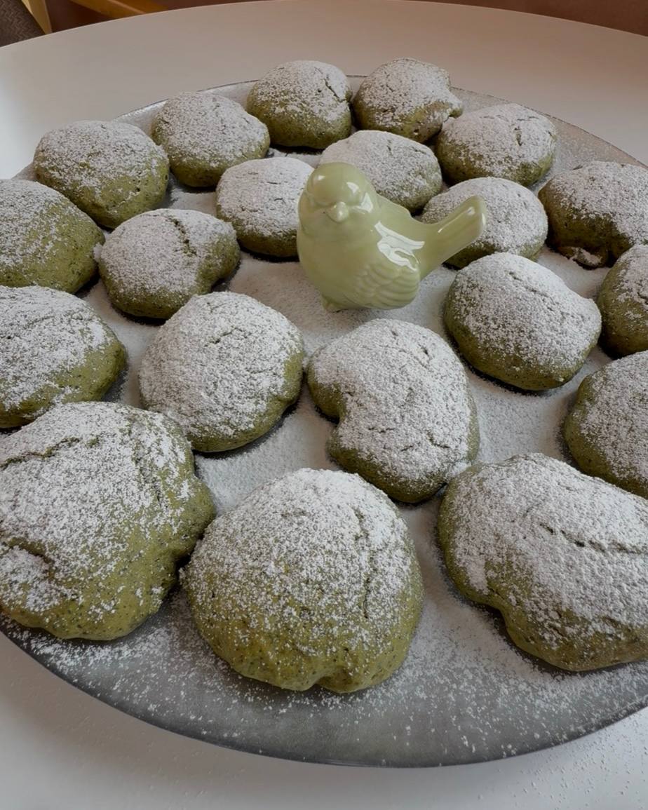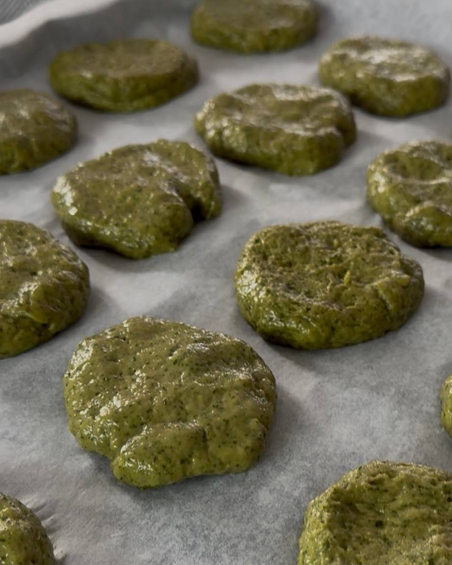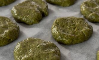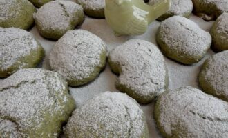 Выпекайте печенье в разогретой до 180°C духовке (верх-низ) около 15 минут. Важно не дать печенью сильно зарумяниться, иначе потеряется его красивый зелёный оттенок.