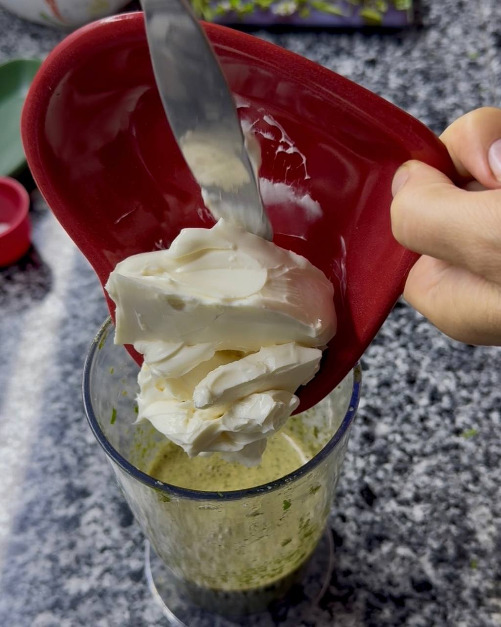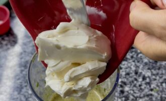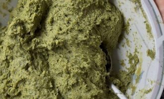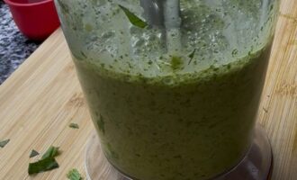 Пробейте массу погружным блендером до однородной консистенции.