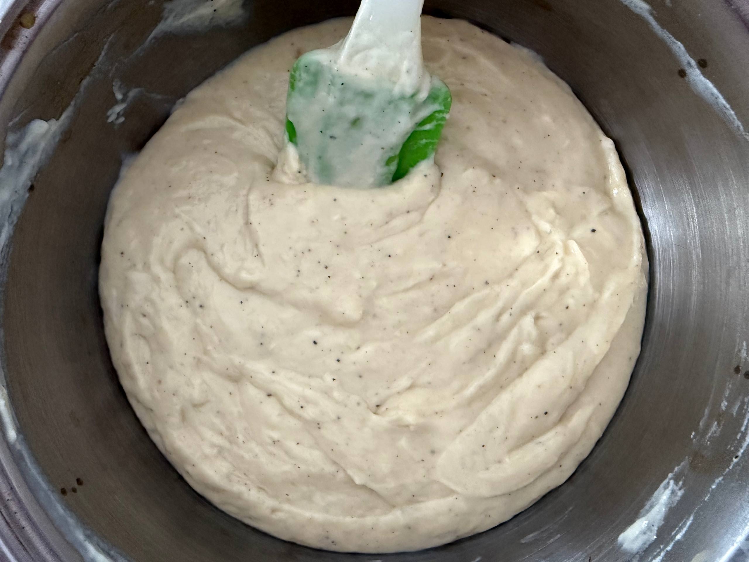 Взболтать яйцо и желток и добавить в соус бешамель. Тщательно перемешать до однородности.
