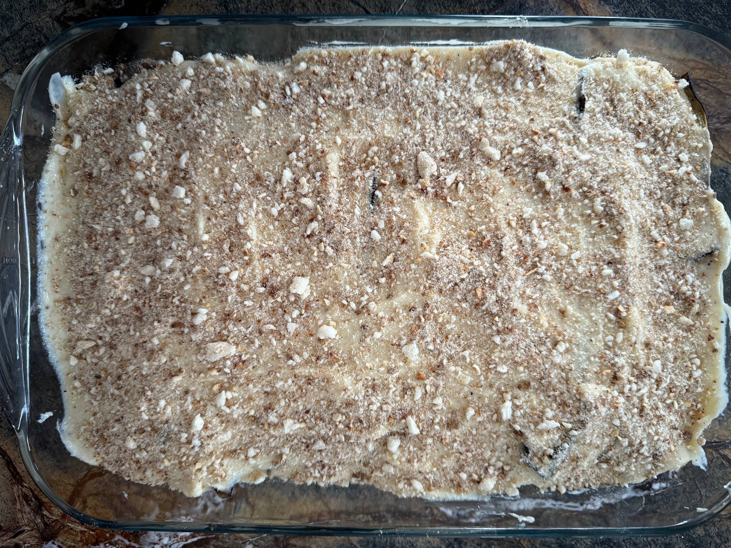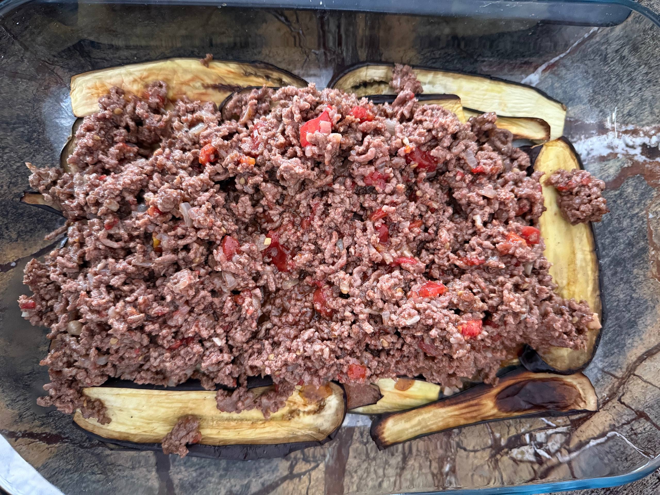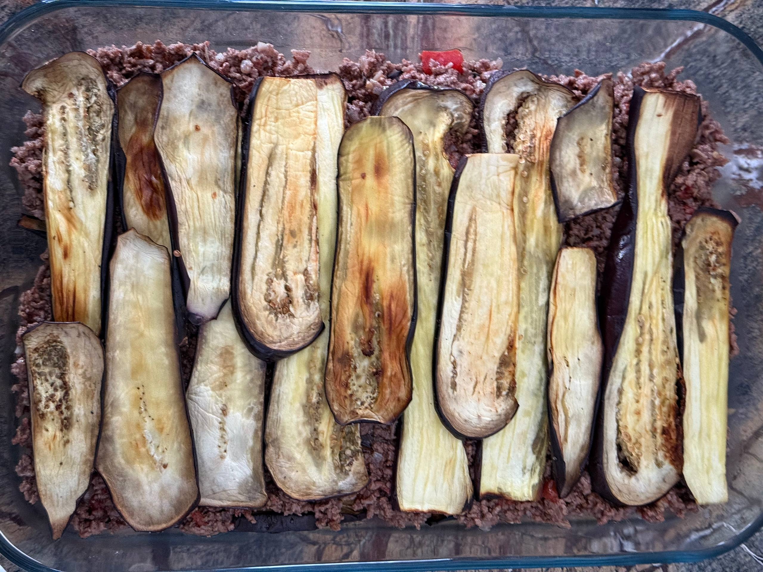 Накрыть оставшимися ломтиками баклажанов.