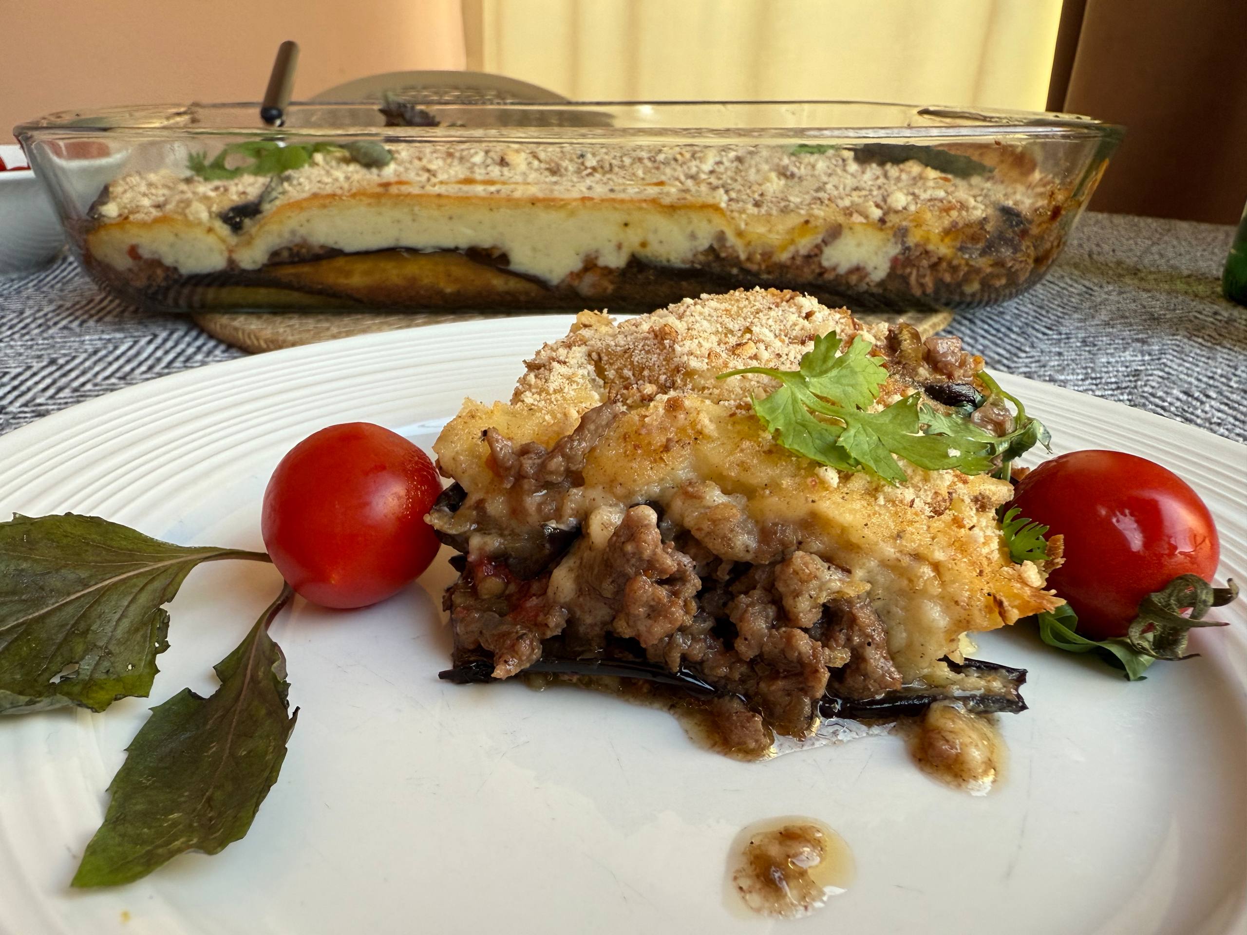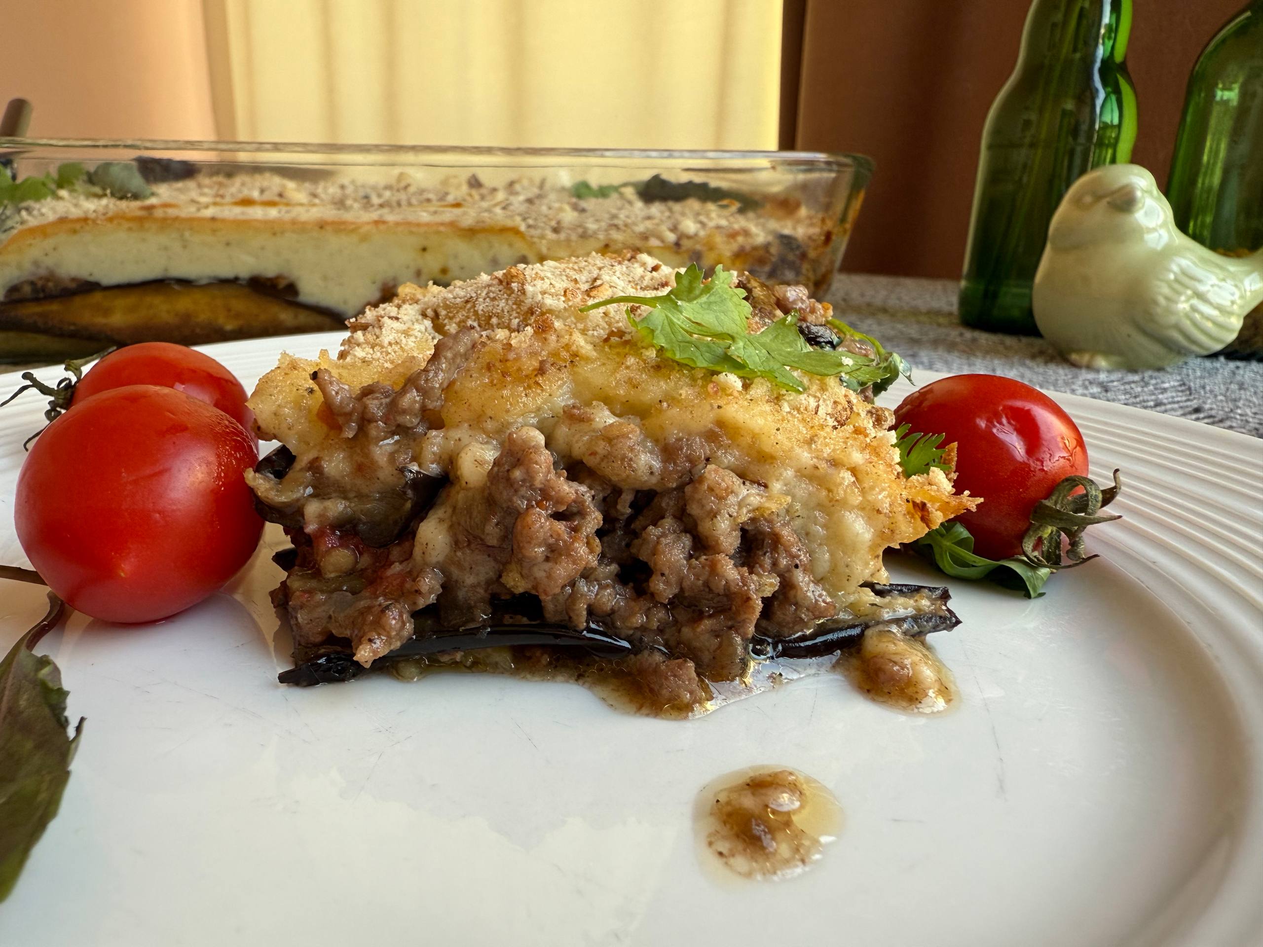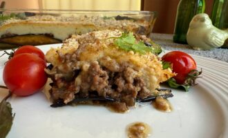 Готовую мусаку с баклажанами нарезать на порционные кусочки, разложить по тарелкам и подавать в теплом виде. Приятного аппетита!