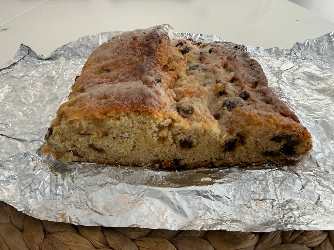 Творожный штоллен /Кваркштоллен (Quarkstollen) – традиционная немецкая выпечка. Кваркштоллен представляет собой сладкий кекс из плотного, но мягкого теста с добавлением творога, изюма, цукатов и/или орехов. В отличие от классического дрожжевого штоллена, этот вариант не требует долгой расстойки и готовится быстрее.