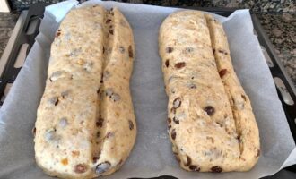 Выпекать Творожный штоллен 60-75 минут. Проверять готовность деревянной палочкой — она должна выходить сухой.
