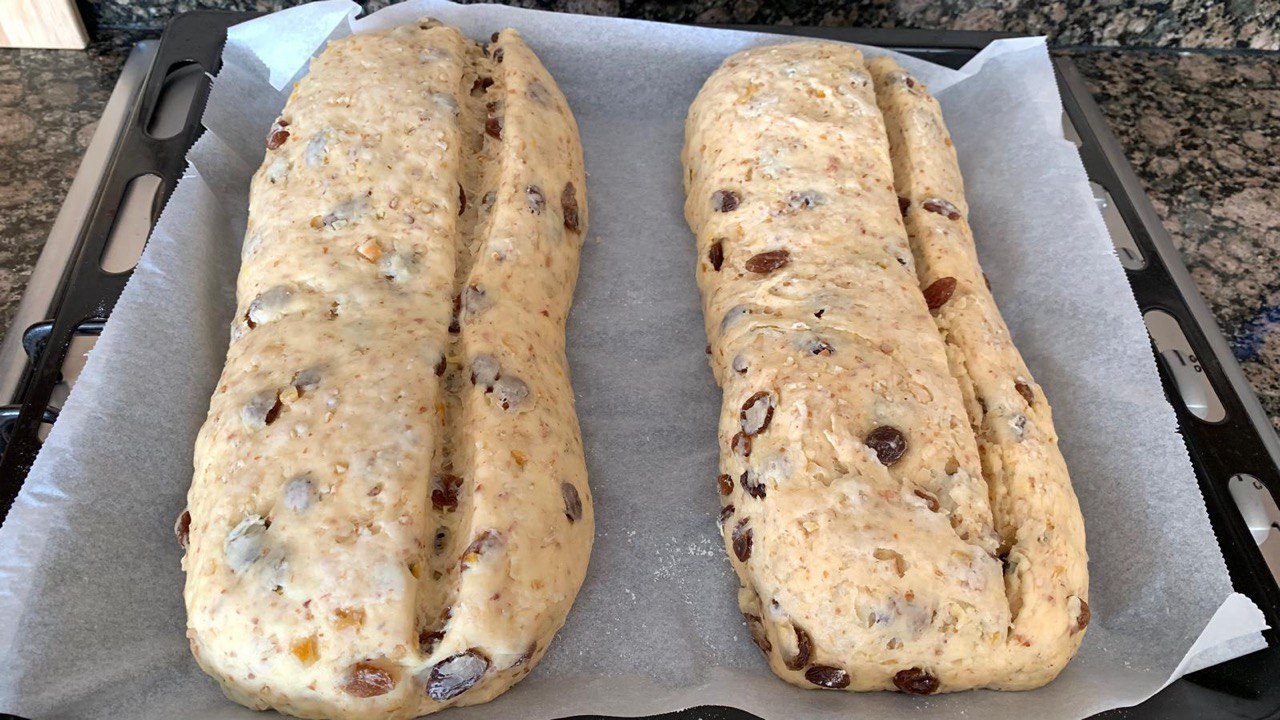Сформировать из теста овальный штоллен, выложить Кваркштоллен на противень.
