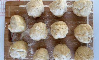 • Разделить тесто на 11 частей, примерно по 100-110 гр каждая.