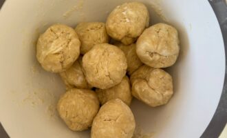 • Сформировать из них шарики, переложить в миску и накрыть крышкой или плёнкой. Убрать в холодильник на 1 час.