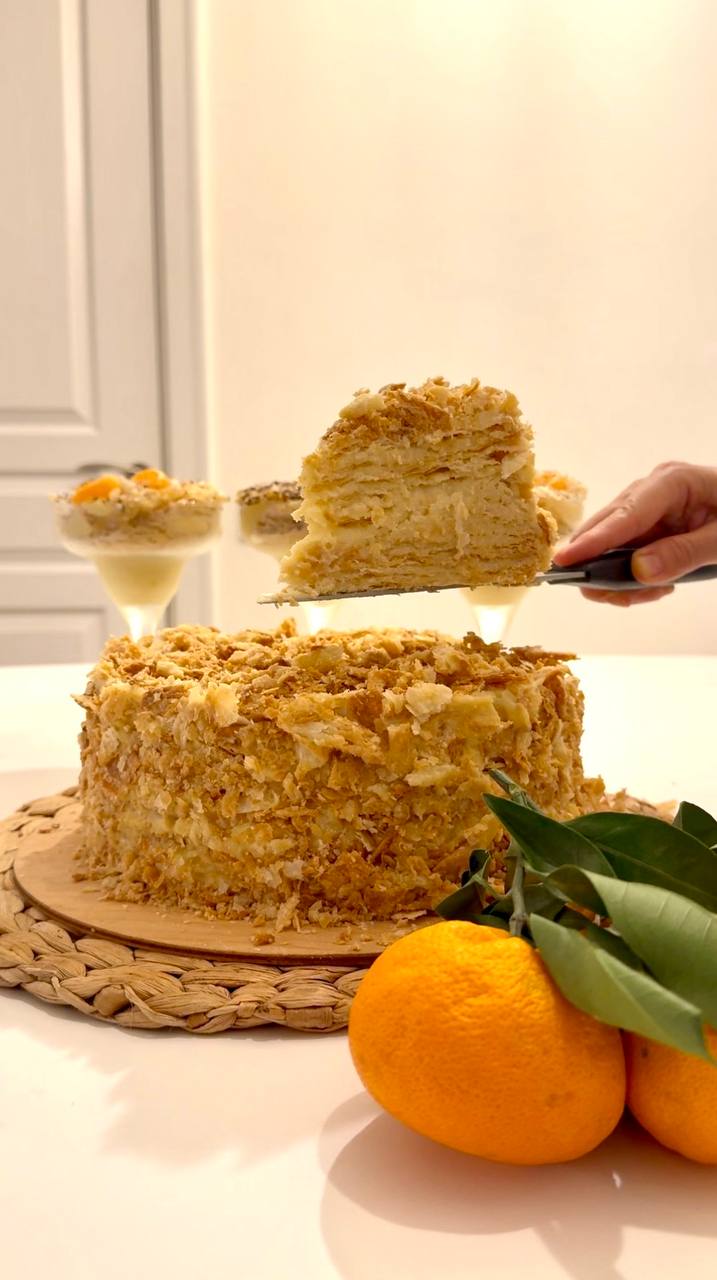 Торт «Наполеон» – традиционный десерт русской кухни. Торт Наполеон представляет собой многослойное изделие из тонко раскатанных коржей слоёного теста, прослоенных заварным или масляным кремом.