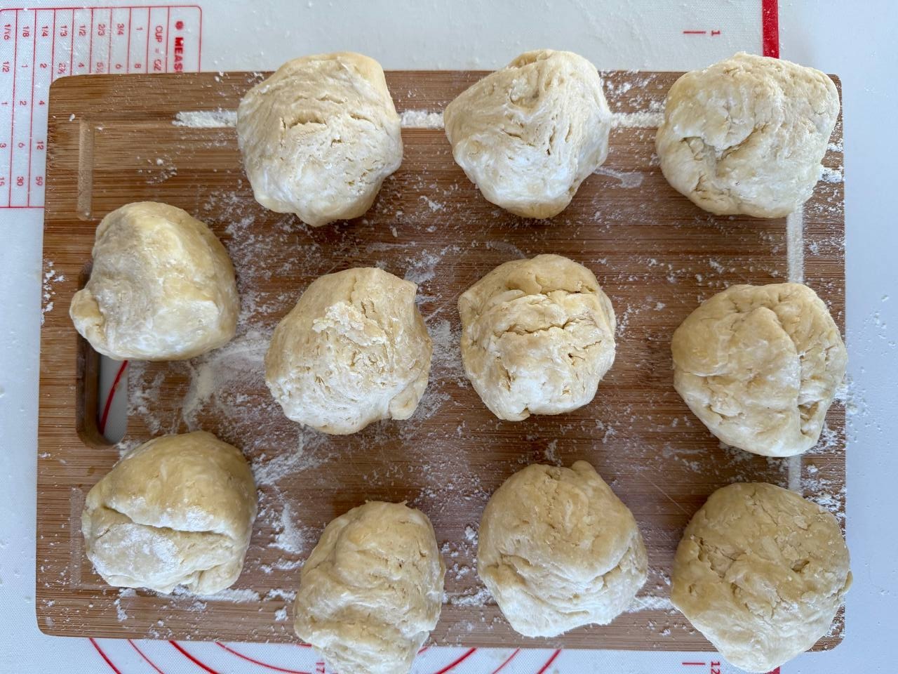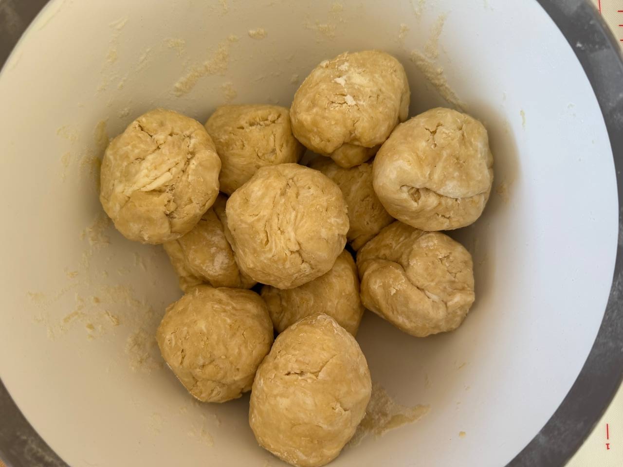 • Разделить тесто на 11 частей, примерно по 100-110 гр каждая.