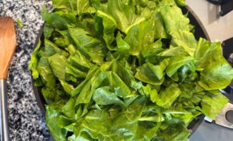Постепенно добавить все листья и потушить несколько минут до мягкости.