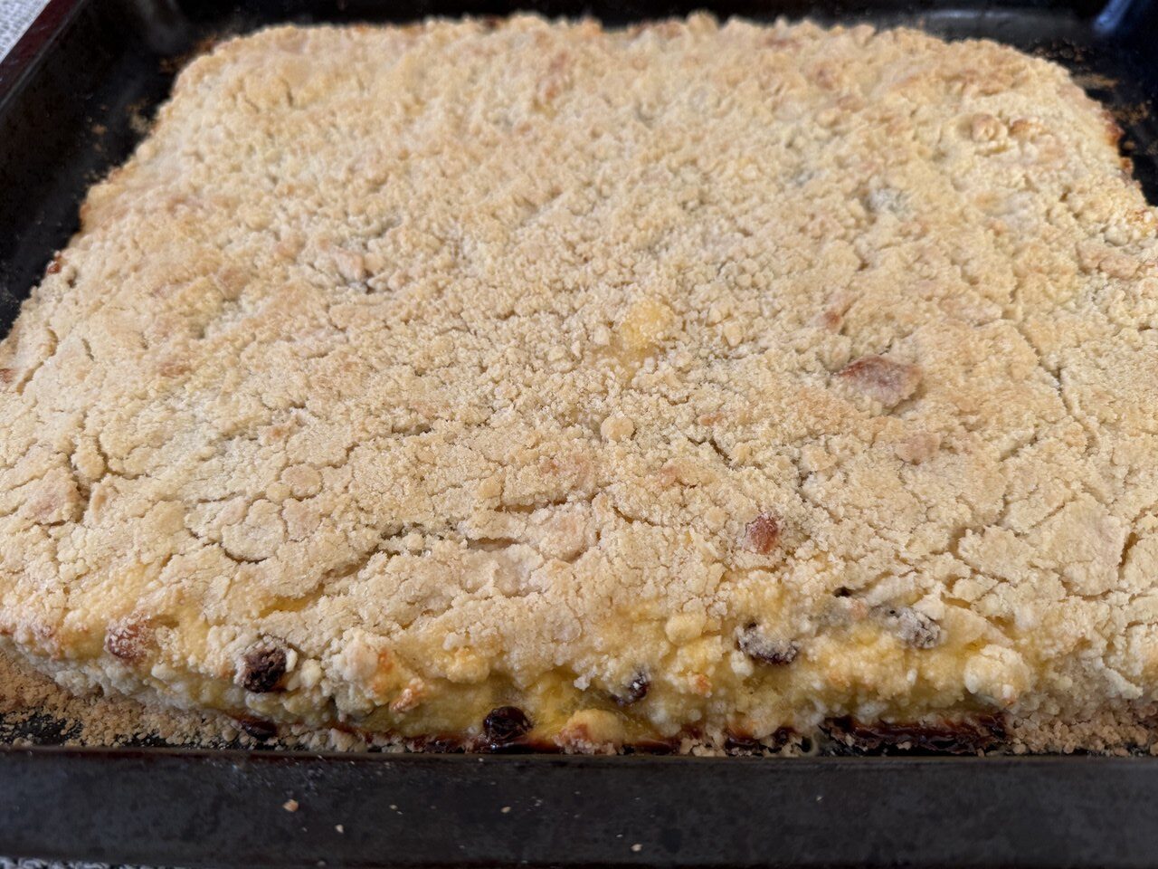 Со временем рецепт распространился в домашней кухне и получил разные названия: «посыпушка», «королевская ватрушка». Этот пирог переходил из одной кулинарной книги в другую, сохраняя свой узнаваемый характер и типичную структуру «крошка + творог».
