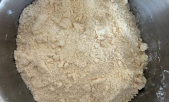 • Добавить муку и всыпать сахар, затем перетереть всё в крошку (посыпку).