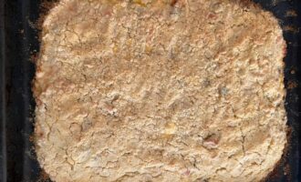 • Выложить 1/2 песочной крошки на дно формы и утрамбовать руками, формируя основу.