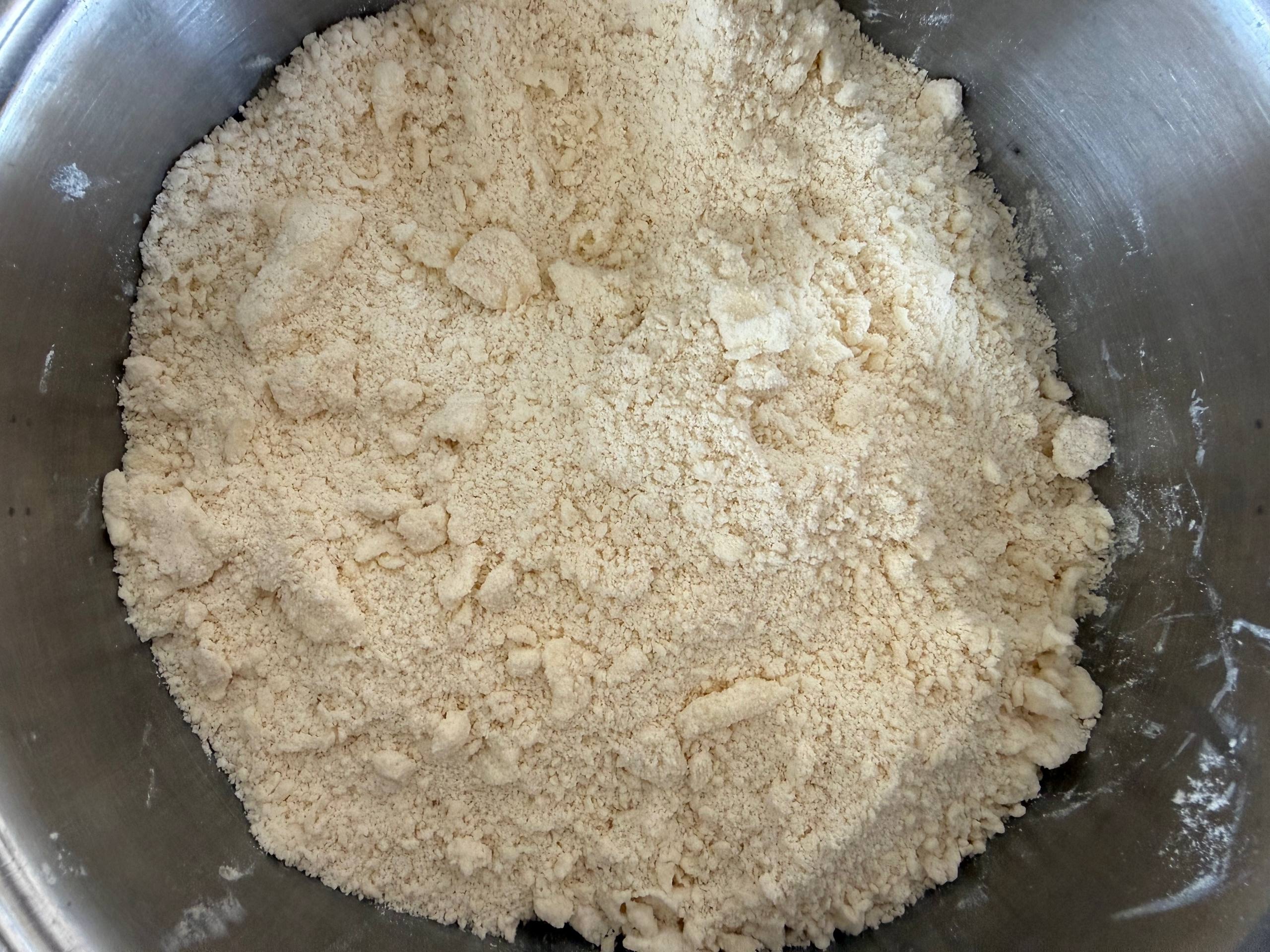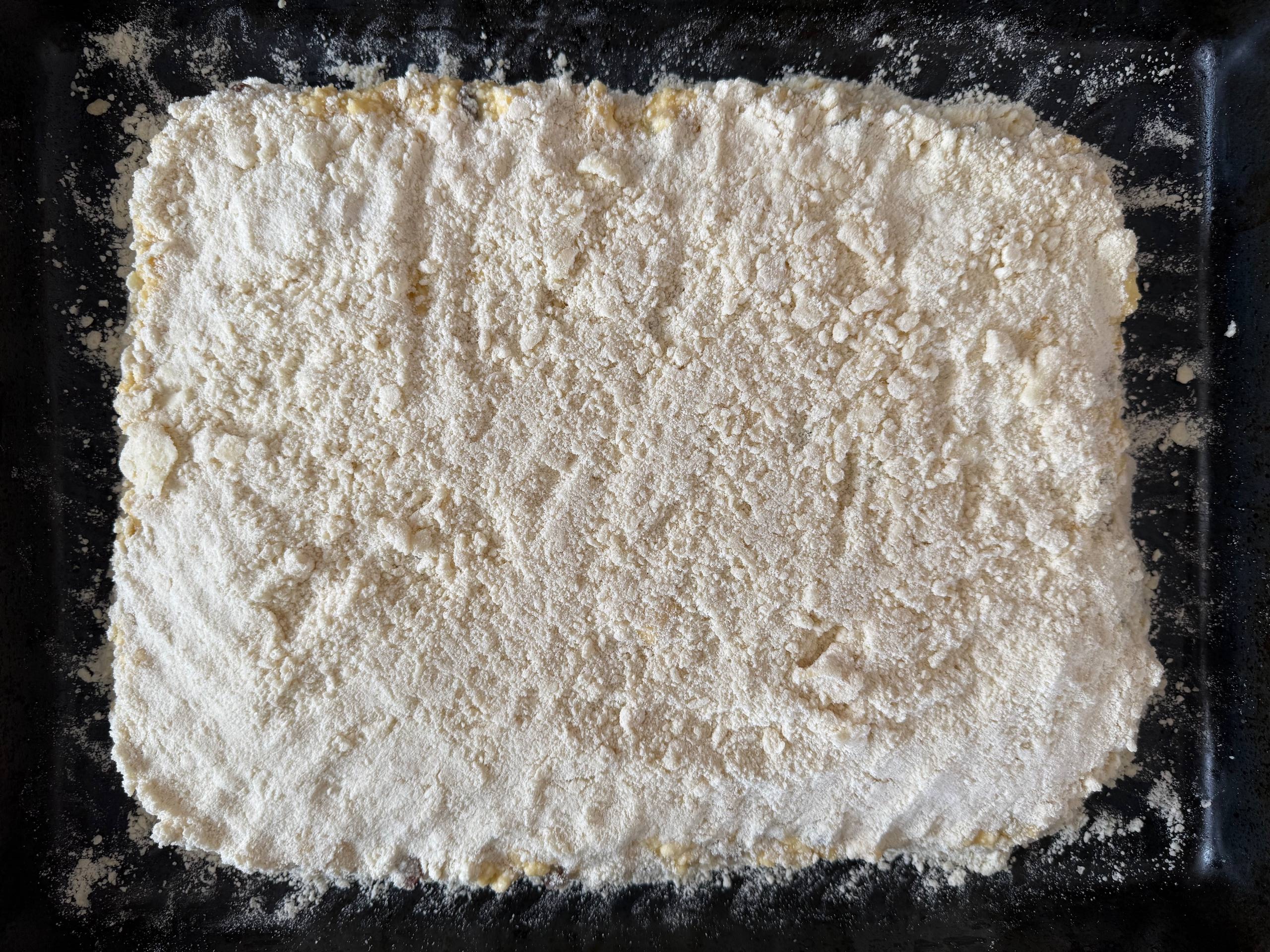 • Добавить муку и всыпать сахар, затем перетереть всё в крошку (посыпку).