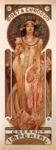 Игристые вина всегда будоражили умы творческих людей. Возможно, одним из первых художников, кто создал рекламные плакаты для Moët & Chandon, был Альфонс Муха. С тех пор, уже более ста лет Шампанское занимает почетное место в массовой культуре.  Оно стало символом успеха и процветания, к которым все стремились. Шампанское можно увидеть на картинах Тулуза Латрека и Поля Сезанна.